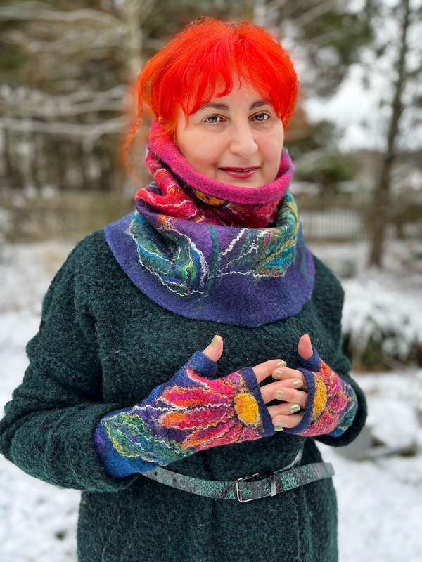 Od zawsze kocham kolory, jestem kolorystką. Nie tylko jest to widoczne w mojej filcowym rękodziele, ale też w moim stylu ubieranie się, w moim domu. Jestem wizytówką swojej marki, więc zazwyczaj mam na sobie jakiś filcowany szal. Bywa, że ludzie na jarmarkach, na których czasem się wystawiam, podchodzą i mówią: Ale u pani jest kolorowo, ale pani jest kolorowa, aż człowiek się uśmiecha.  Zdarza się, że zatrzymują mnie na ulicy obce osoby, żeby o tym powiedzieć. Takie wpisy zostawiają mi też kobiety na moich mediach społecznościowych, które poprawiają sobie nastrój, oglądając moje energetyczne prace.  No więc zarażam tą pasją do kolorów, bo w nich tkwi ogromna energia, która jest nam potrzebna.